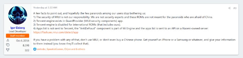 冰点资源分享[频道] 重磅:MIUI13 EU版(官改欧洲版)也存在国家反诈中心组件 也会向小米服务器传输应用列表 https://www.coolapk1s.com/feed/42719865 环境:ROM:MIUI13.0.6 EU版 MIUI安全组件版本:1.3.8 包名:com.miui.guardprovider 网页存档:WebArchive APK存档:Onedrive MIUI14再次被石锤 https://www.coolapk1s.com/feed/42944139…